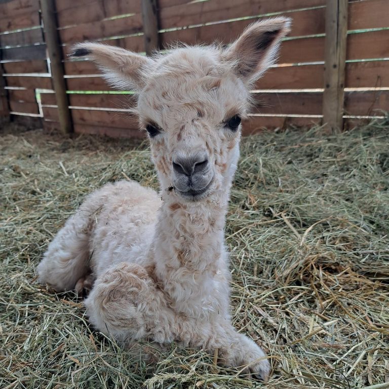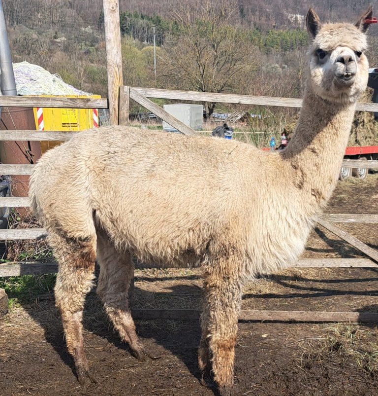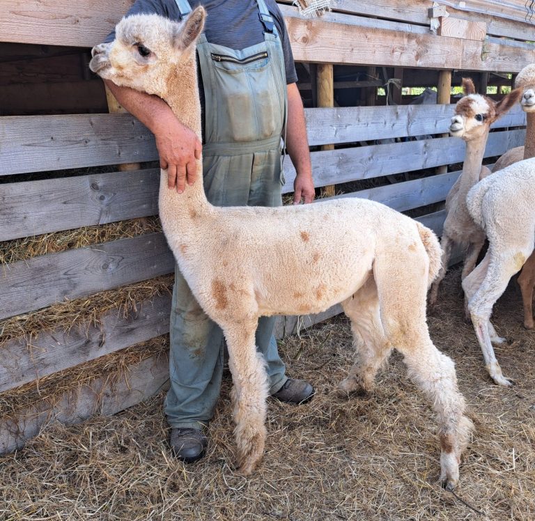 Das ist das Fohlen welches in 2025 geboren ist, eine OLD Charming Boy Tochter. Sicherlich wird sie in naher Zukunft auf den Alpakashows zu sehen sein.