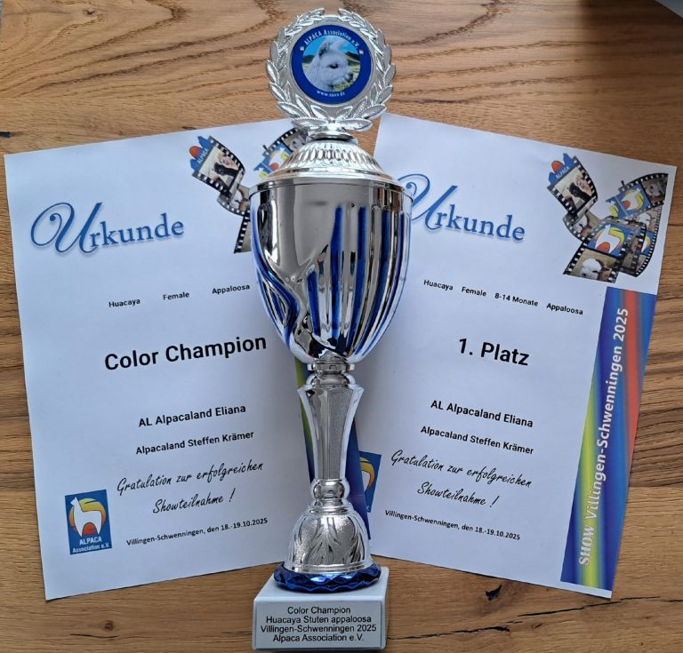 Eliana wurde von uns einmal auf Show vorgestellt und konnte sich gleich den Color Champion Titel sichern, Ausserdem wurde sie in diesem Jahr bei der Herdbuchprüfung des AAeV vorgestellt, wir sind sehr gespannt auf die Ergebnisse.