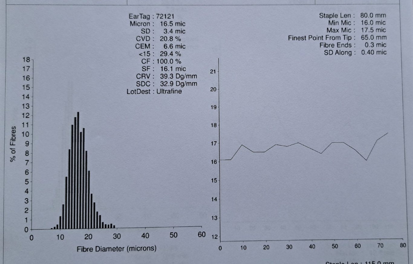 In der ersten Schur 2025 hat sie folgende Faserwerte: (gemessen bei Art of Fibre)