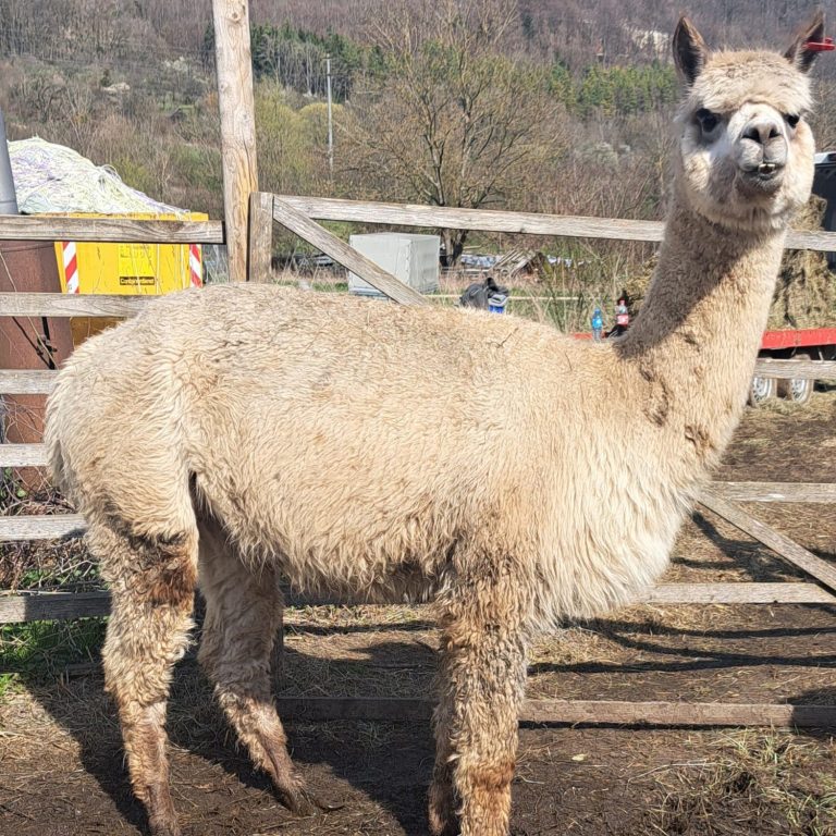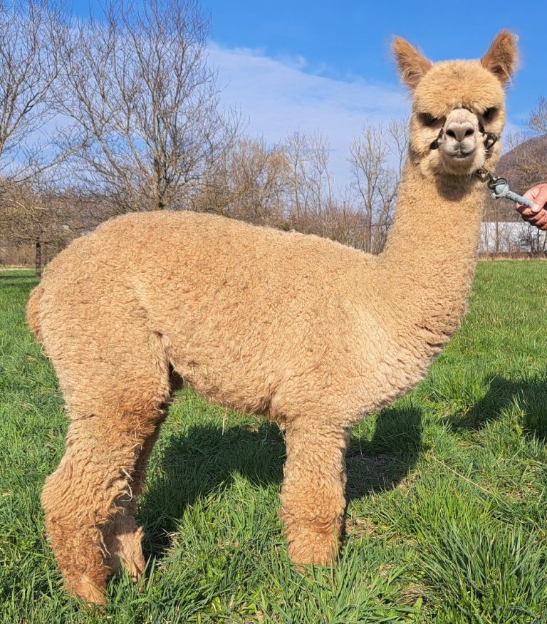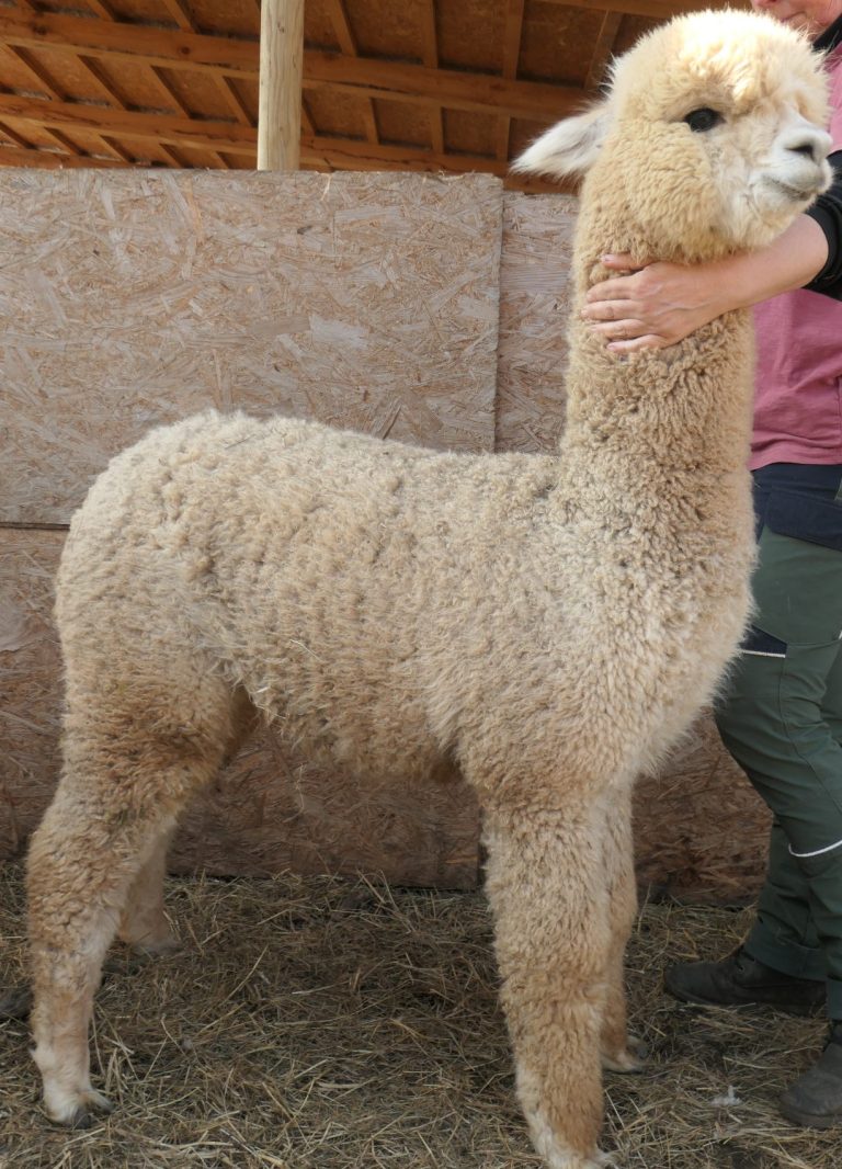 Eine fawn farbene ALR Alpacarium Draco Tochter aus einer BA Bühlertal Tornado Tochter