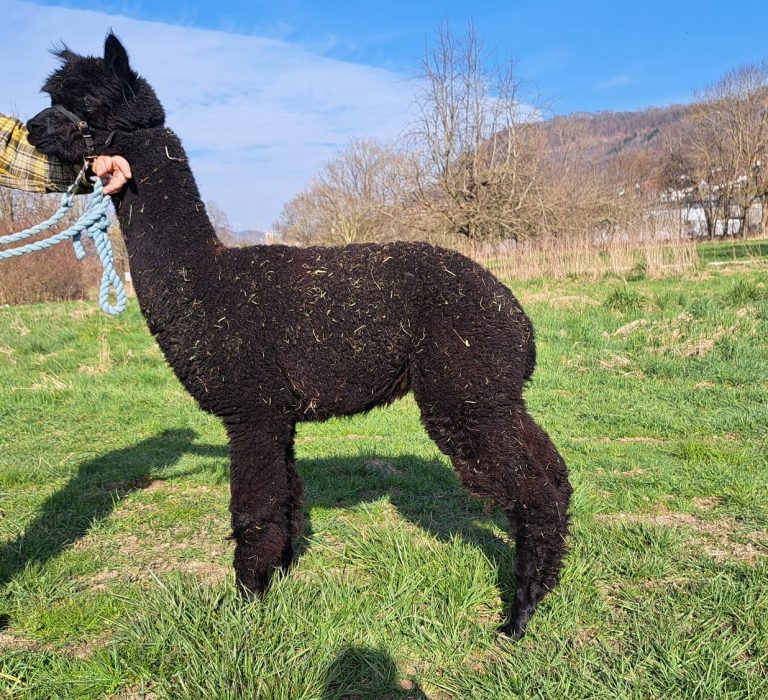 Eine tolle schwarze AL Alpacaland Garry Tochter aus einer weissen Swan Valley Sovereign Tochter